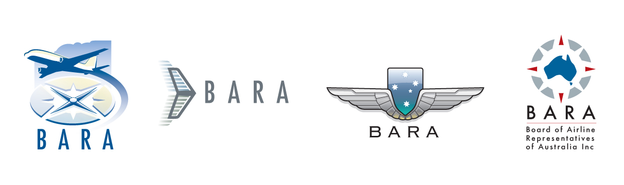 BARA (Board of Airline Representatives of Australia) a Sydney based airline lobby group were long overdue a branding overhaul. The first stage of which involved re-designing their existing logo and communications collateral. Several options were prepared based on outcomes from a preliminary requirements meeting with the client. The BARA board finally chose option 4.