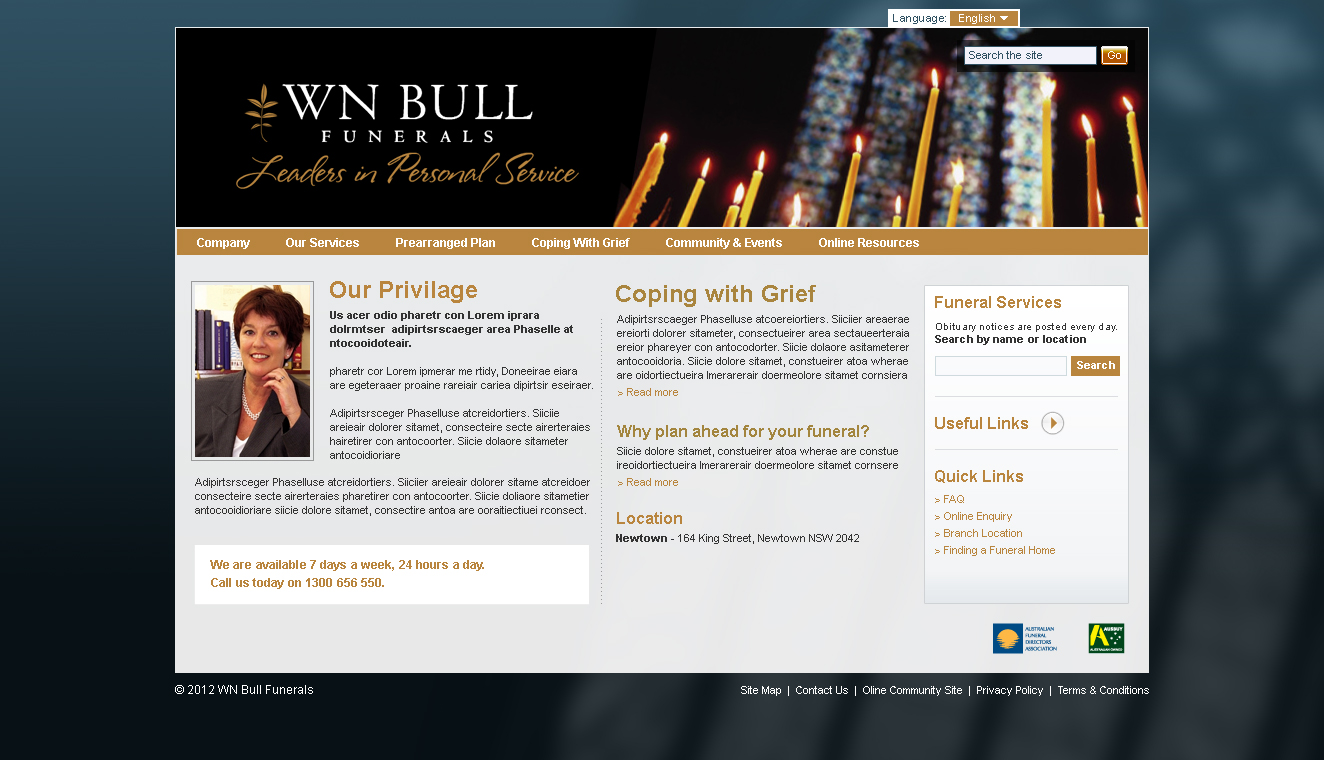For the past several months Meat2Veg has been producing panoramic virtual tours as well as helping out on a major re-branding project for Invocare, the parent company for dozens of Funeral Directors around Australia. Interface design for the websites is based on a common template built using the Sitecore CMS. The CSS files are then updated to give each site it's own unique skin.